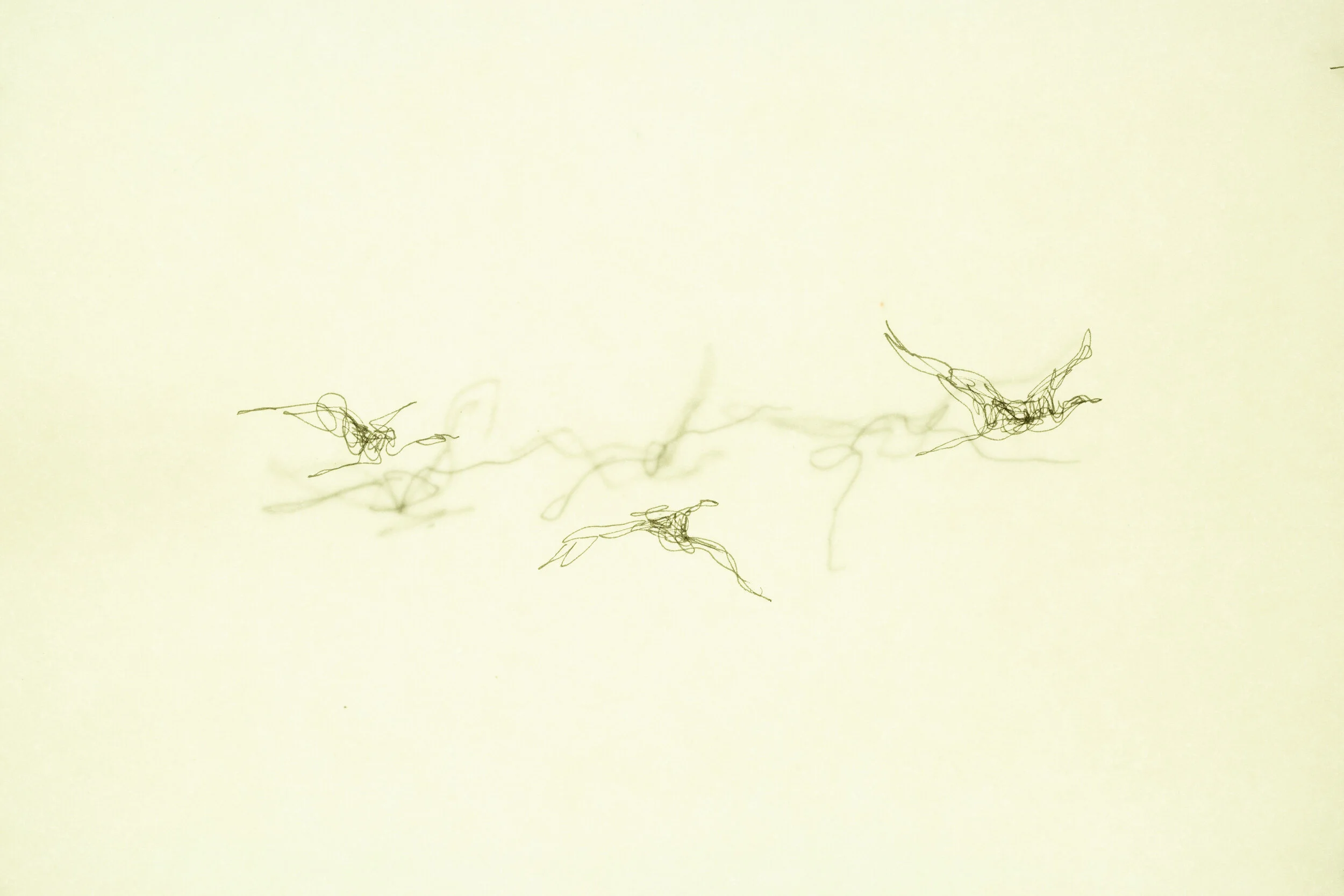For those of you interested in process – these cormorants have undergone some interesting translation to become what you see here. Photogrpaher and film maker Paul Esposti photographed them in flight in Mimico (in flight above Lake Ontario/Leading Sea/ Niigani-gichigami (in Ojibwe). I used Paul’s photos to draw stills with ink and pencil on vellum (about 90 drawings). He then photographed each image, and Paul turned them into an animation, did the sound design and edited.